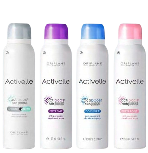 اسپری دئودورانت اکستریم اکتیبوست اوریفلیم در چهار رنگ مختلف موجود است که هر کدام دارای میزان محافظت متفاوتی هستند: