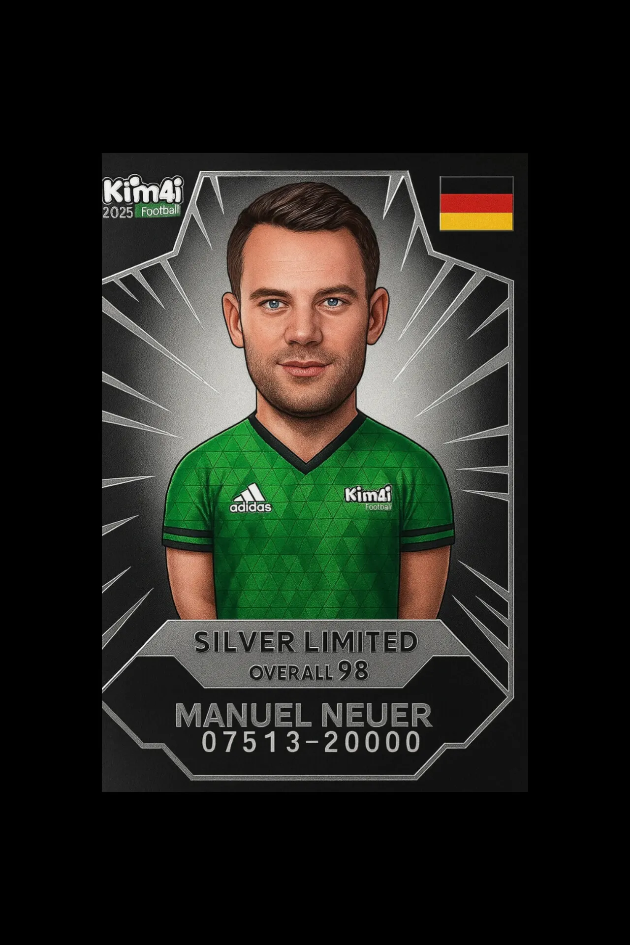 مانوئل نویر، دروازهبان بزرگ تیم ملی آلمان، همیشه به عنوان یکی از بهترین دروازهبانهای تاریخ شناخته میشه. این کارت با قدرت کلی (Overall) 98 ارزش کلکسیونی خیلی بالایی داره و چون نسخه محدود (Limited) هست، تعداد کمی ازش چاپ شده.